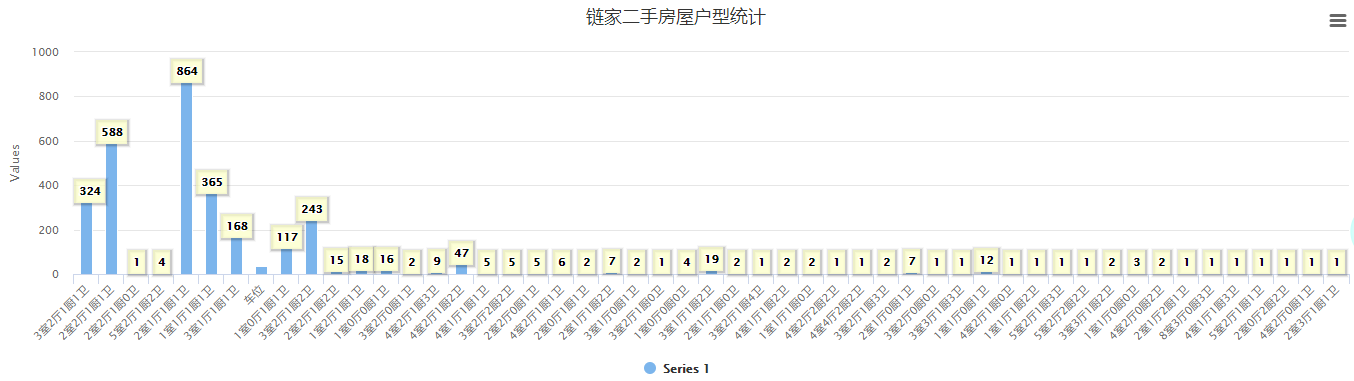 在该程序总,可以绘制出数据的不同可视化图形,这里对房屋户型的折线图,曲线图,面积图及柱形图进行展示: