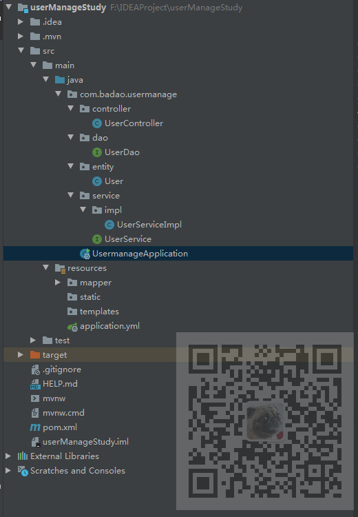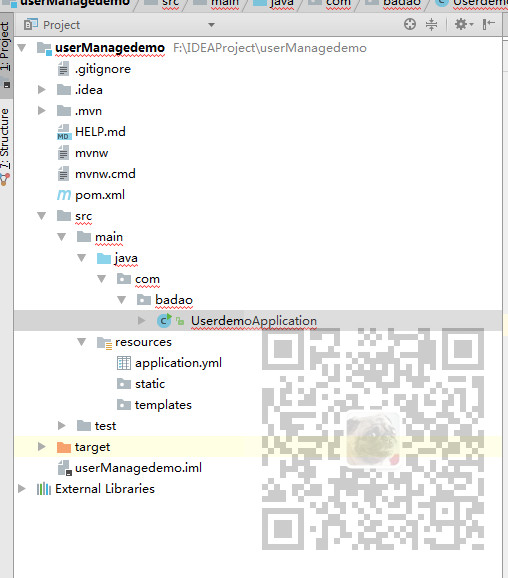 参照上面博客在IDEA中搭建好SpringBoot项目,搭建好后的项目目录为