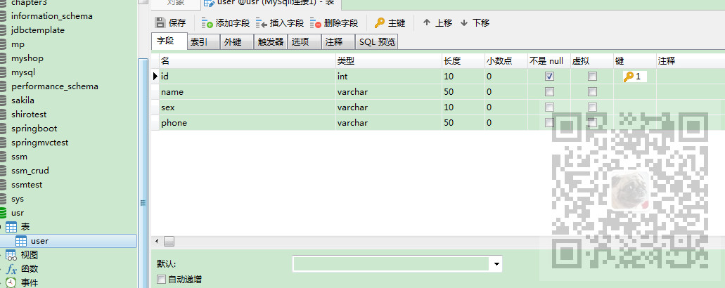 本地安装Mysql 8.0 ,并安装连接Mysql的工具 Navicat,新建数据库usr,并新建表user
