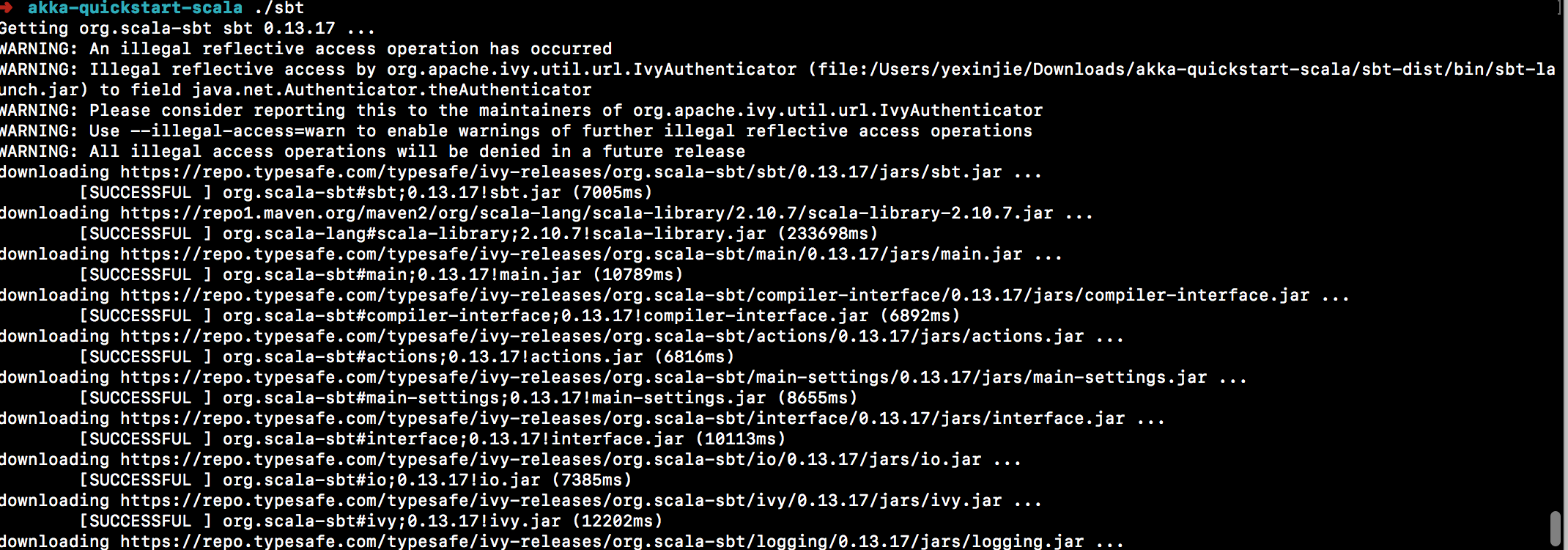 然后在这个目录中,我们执行 ./sbt 或者 sbt.bat(windows 环境)来下载项目依赖的包,不过真的是够慢的哈。