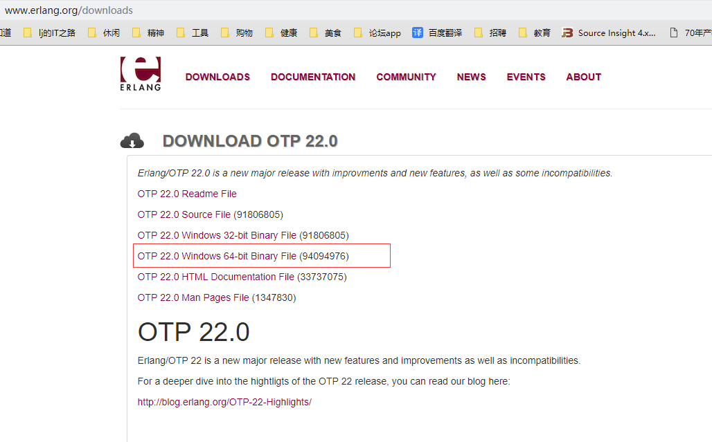 1. 登录Erlang官网,进入下载页,然后按照自己的系统环境来选择需要下载的安装文件。