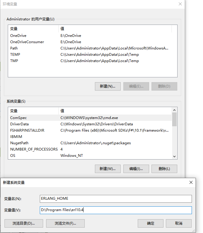 2.安装完成后,配置Erlang环境变量。