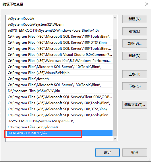 点击新建,将%ERLANG_HOME%\bin加入到path中,如图: