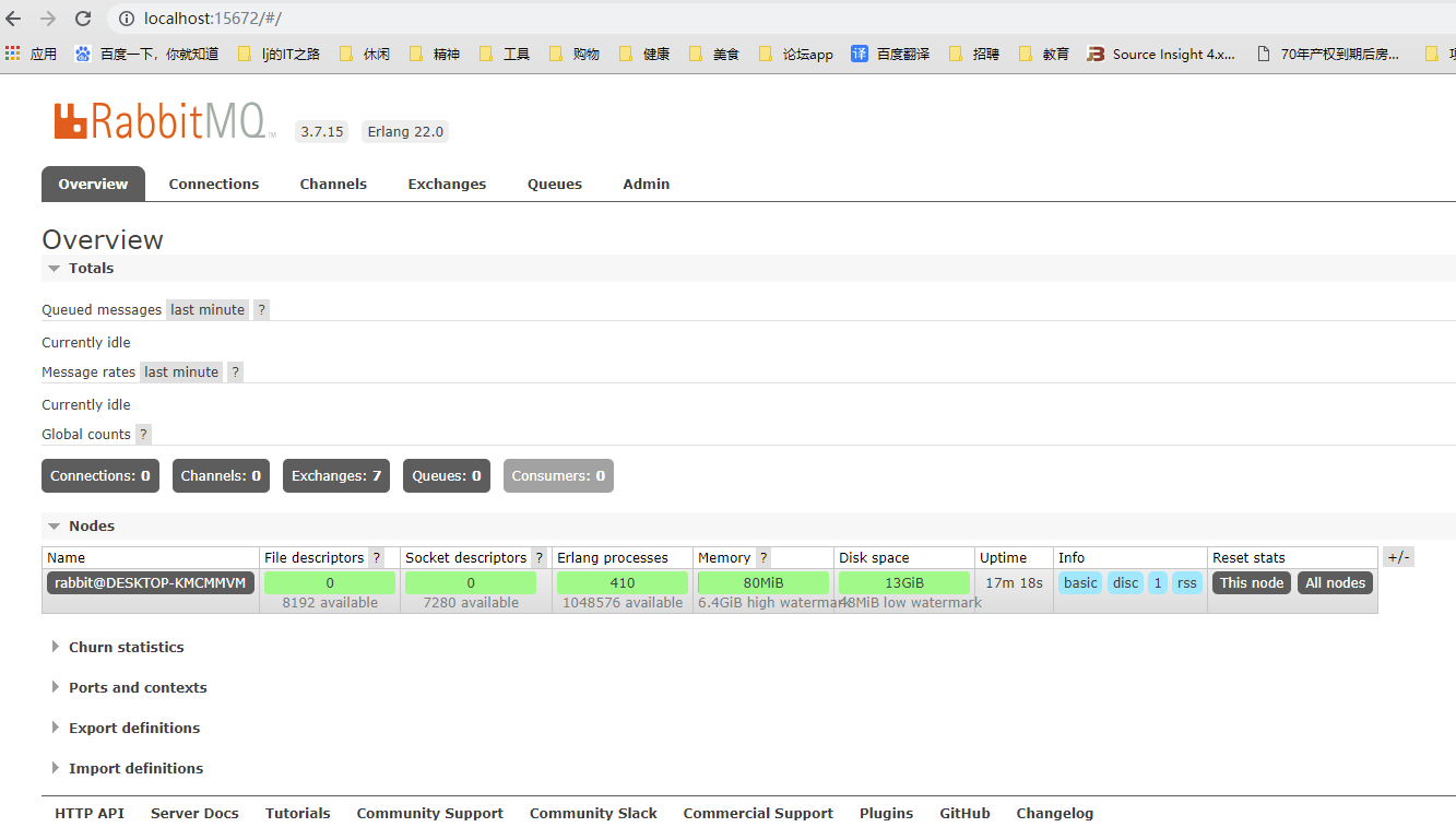 如果出现http://localhost:15672 访问不了的情况,请确认RabbitMQ的服务是否启动,Telnet测试下5672 、15672是否通。