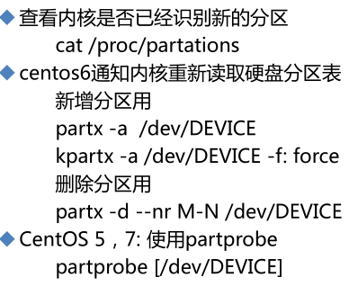 Centos6 上新增分区,删除分区,在不关机的情况下,使硬盘与内存数据同步