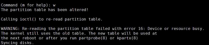 用 partprobe 命令就可直接同步硬盘与内存中的数据了
