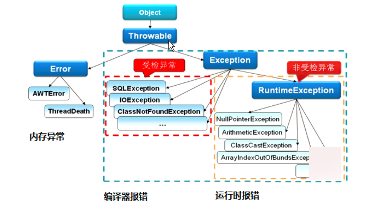 RuntimeException 如 : NullPointerException 、 ClassCastException ; 一 个 是 检 查 异 常