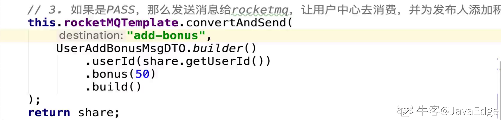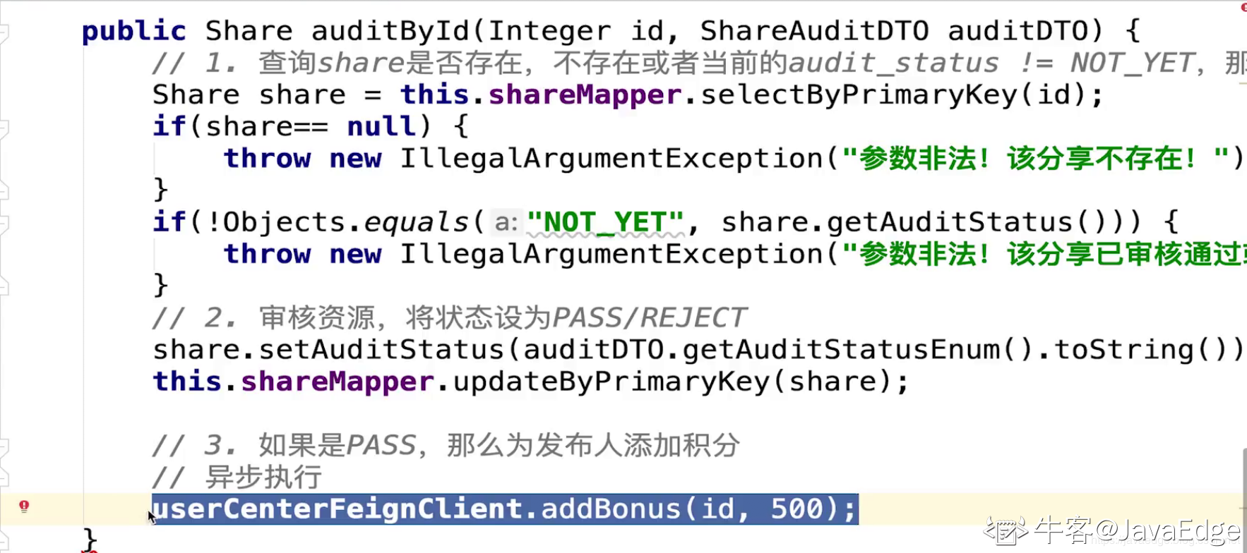 假设添加积分操作很耗时,我们的主要操作是审核,而不关心积分,所以可以将其异步化