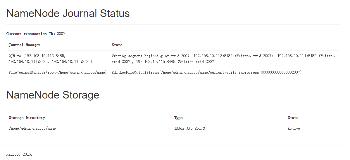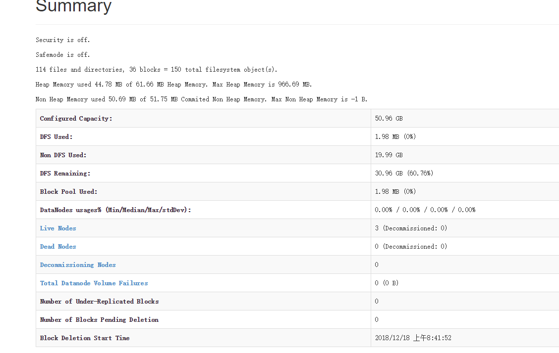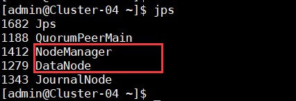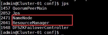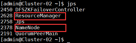 2、在主节点使用“$start-all.sh”,备用主节点使用“$yarn-daemon.sh start resourcemanager”命令,启动Hadoop集群,在主节点查看Java进程信息,若有名为“NameNode”、“ResourceManager”的两个进程,则表示Hadoop集群的主节点启动成功。在每台数据节点,若有名为“DataNode”和“NodeManager”的两个进程,则表示Hadoop集群的数据节点启动成功;