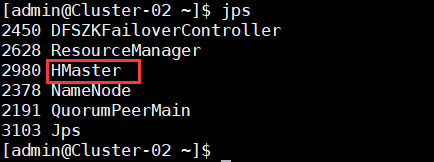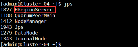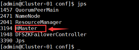 3、确定Hadoop集群已启动状态,然后在主节点使用此命令,启动HBase集群。并在集群中所有主机上使用命令“jps”查看进程;