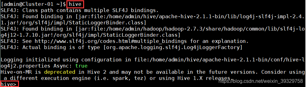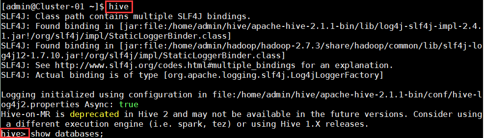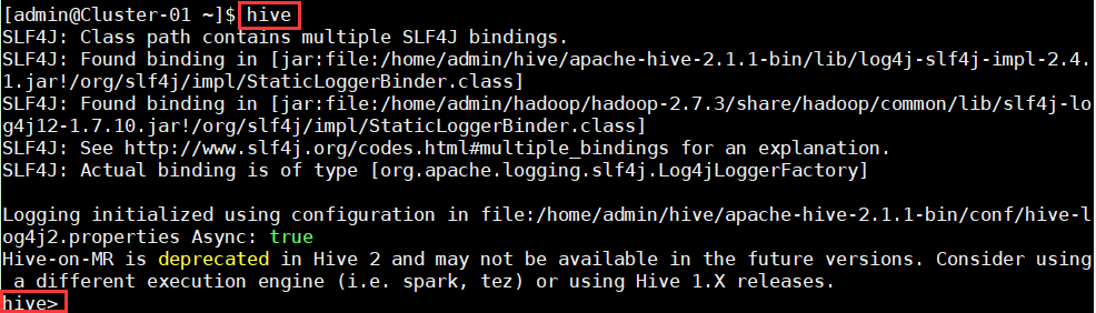 [admin@Cluster-01apache-hive-2.1.1-bin]#mv/usr/local/apache-hive-2.1.1-bin/lib/log4j-slf4j-impl-2.4.1.jar/usr/local/apache-hive-2.1.1-bin/lib/log4j-slf4j-impl-2.4.1.jar.bak