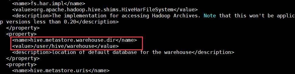 (7)修改配置文件,使在导入数据的工程中,如果在见表的过程中没有指定location,那么就会在hive.metastore.warehouse.dir指定路径下,以表名创建一个文件夹,之后所有的数据就会存储在此文件夹中;