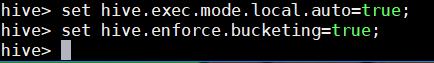 (1)修改参数允许强制分桶,也可以修改hive_site.xml文件中的参数改为true;