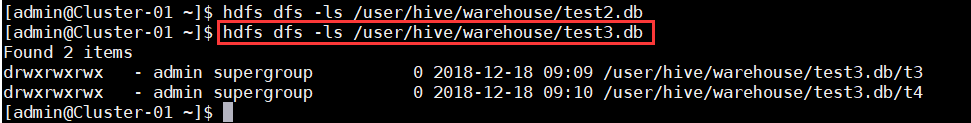(6)查看/user/hive/warehouse/目录下的test2.db和test3.db文件夹;