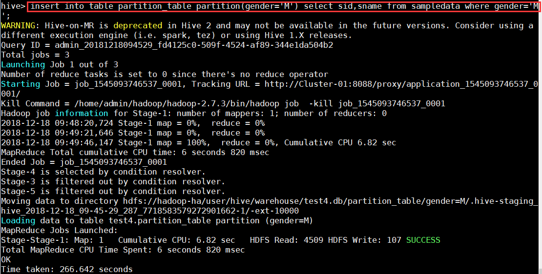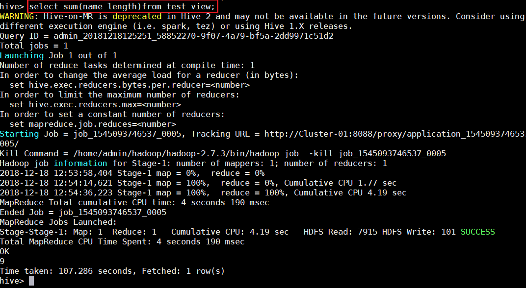 (7)最后,对View执行一次查询,显示Stage-1阶段对原始表test进行了MapReduce过程;
