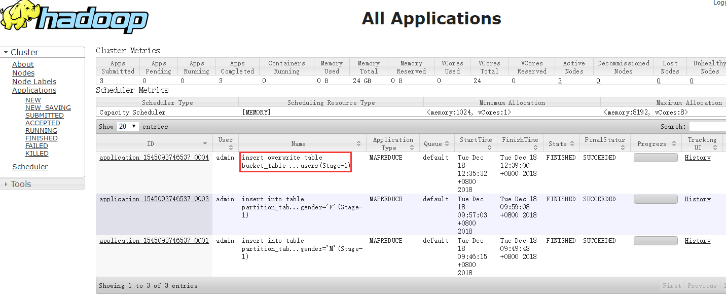 (8)登录http://192.168.10.111:8088/cluster/apps可以查看job执行状态;