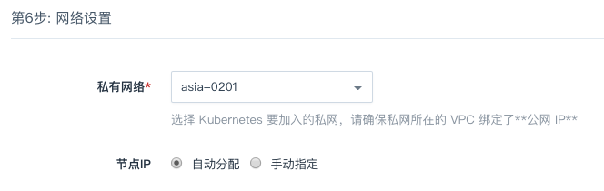 选择集群主机所在的私网,私网需要在创建集群前准备好。