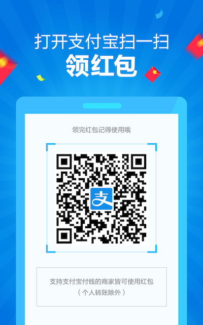 这是支付宝推出的一个最新活动,用支付宝扫码即有红包送,0元到99元不等,红包可以到店支付使用,每日仅可领一次。你每用一个红包,作者即可得到支付宝送出的1毛赏金,如果你觉得这篇文章对你有用,那不如扫码支持一下作者吧!
