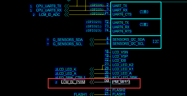 背光控制部分不经过PMIC而是通过一颗单独的带有boost转换功能的LED驱动器如LM3630A,该芯片通过PWM调节亮度。