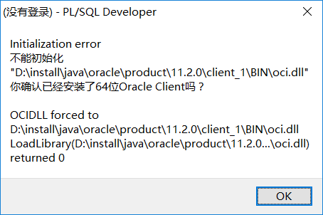 如果是按上面安装步骤来配置(未登录配置oci.dll 为 client目录)会出现如下错误: