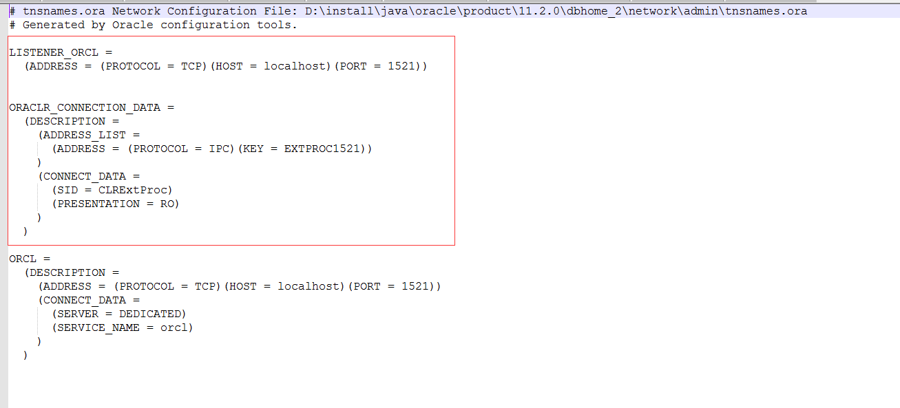 将 D:\install\java\oracle\product\11.2.0\dbhome_2\NETWORK\ADMIN\tnsnames.ora 文件修改下: