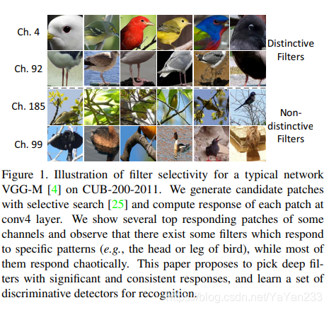在某种意义上,这些卷积滤波器作为检测器的一部分。然而,这些检测器通常很弱,而且大多数与我们的细粒度任务无关。