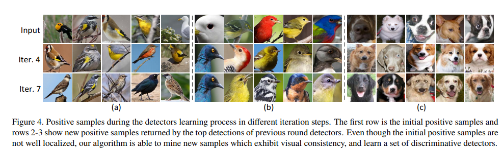 这种训练都是弱监督的,它只需要训练示例的标签,而不需要任何对象/部件级别的注释。