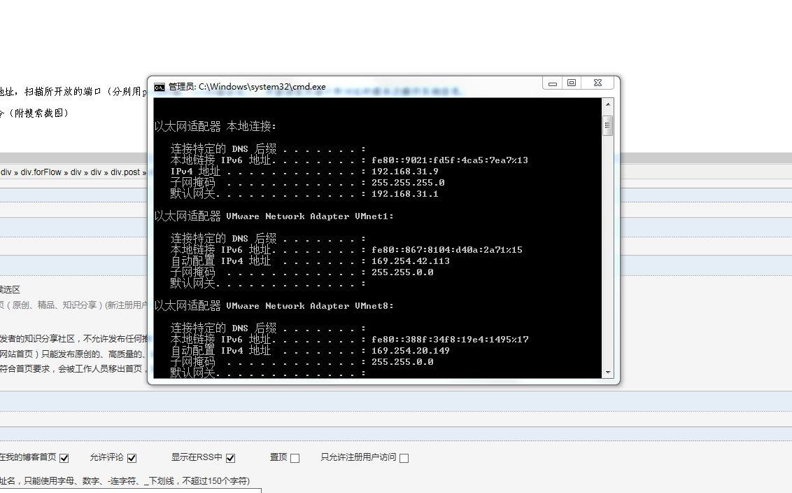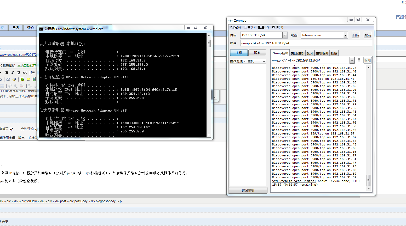 请查询本机的IP地址和子网掩码,并在局域网中扫描本网段内的所有存活主机(附搜索截图)