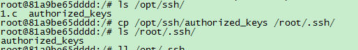 -v 后面的是将本地的/opt/ssh目录挂到容器的/opt/ssh上面去(如果容器里面的/opt下面没有ssh目录,则直接会创建ssh目录),是为了将宿主机上面的文件拷贝到容器里面去。(主要是为了将authorized_keys文件从宿主机拷贝到容器中的去)