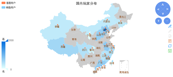 通过玩家登陆游戏产生的数据分析玩家在全国地区的分步情况,调整广告投放策略
