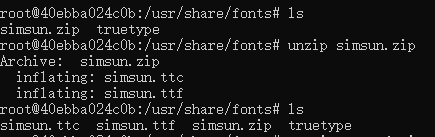 unzip simsun.zip