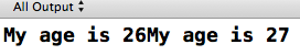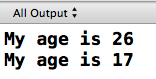 * 第2行代码中的\n是个转义字符,表示换行,所以输出了第一句"My age is 26"后会先换行,再输出"My age is 27"