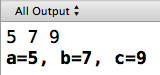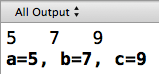 * 所有的数值都输入完毕后敲回车键,scanf函数会依次给变量a、b、c赋值,接着输出