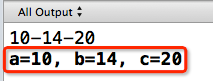 printf("a=%d, b=%d, c=%d", a, b, c);