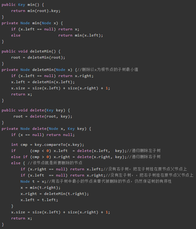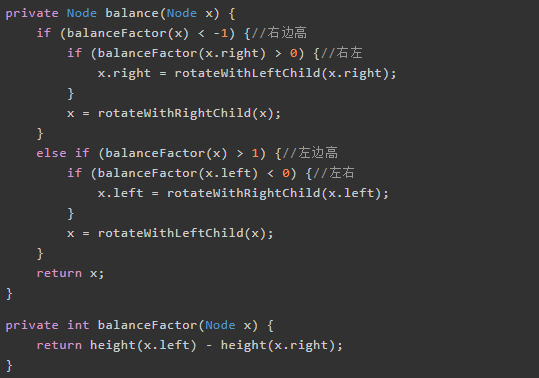 AVL查找操作与BST相同,AVL的删除与插入操作在BST基础之上需要检查是否平衡,如果不平衡就要使用旋转操作来维持平衡: