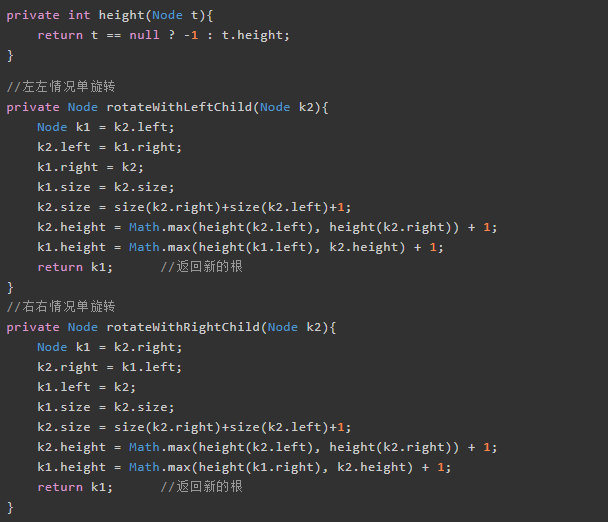 从图2中可以可以看出,1和4两种情况是对称的,这两种情况的旋转算法是一致的,只需要经过一次旋转就可以达到目标,我们称之为单旋转。2和3两种情况也是对称的,这两种情况的旋转算法也是一致的,需要进行两次旋转,我们称之为双旋转。