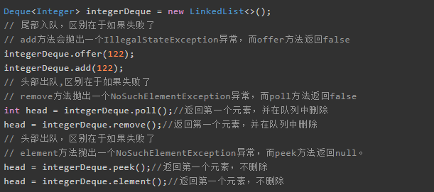 Java中,LinkedList实现了Deque,可以做为双向队列(自然也可以用作单向队列)。另外PriorityQueue实现了带优先级的队列,亦即队列的每一个元素都有优先级,且元素按照优先级排序。