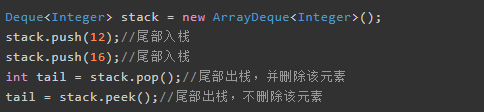 Java中,Stack实现了这种特性,但是Stack也继承了Vector,所以具有线程安全线和效率低下两个特性,最新的JDK8中,推荐用Deque来实现栈,比如: