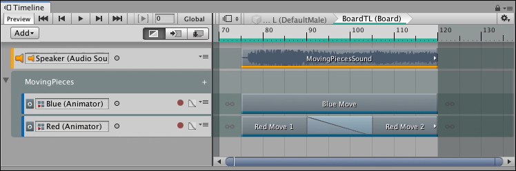 当按钮为Global时,时间轴会从子Timeline在父Timeline开始的位置显示。比如子Timeline的Control clip是从70帧开始的,那时间轴上的开始位置就会显示70。如下图所示: