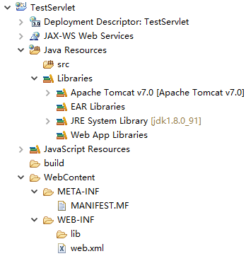 至此,动态的Web项目就创建好了,可以看下项目的结构: