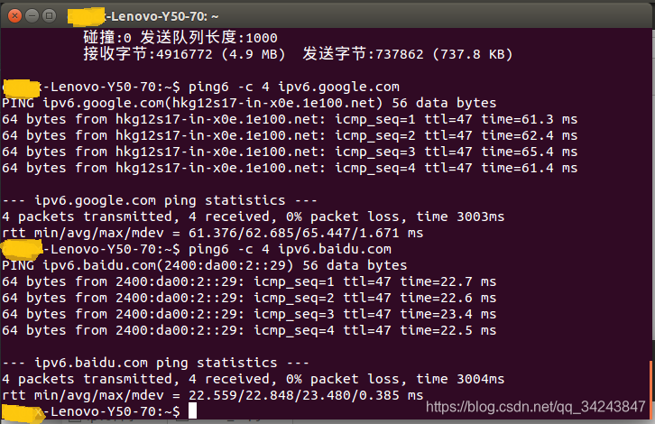ping6 -c 4 ipv6.baidu.com等ipv6网址