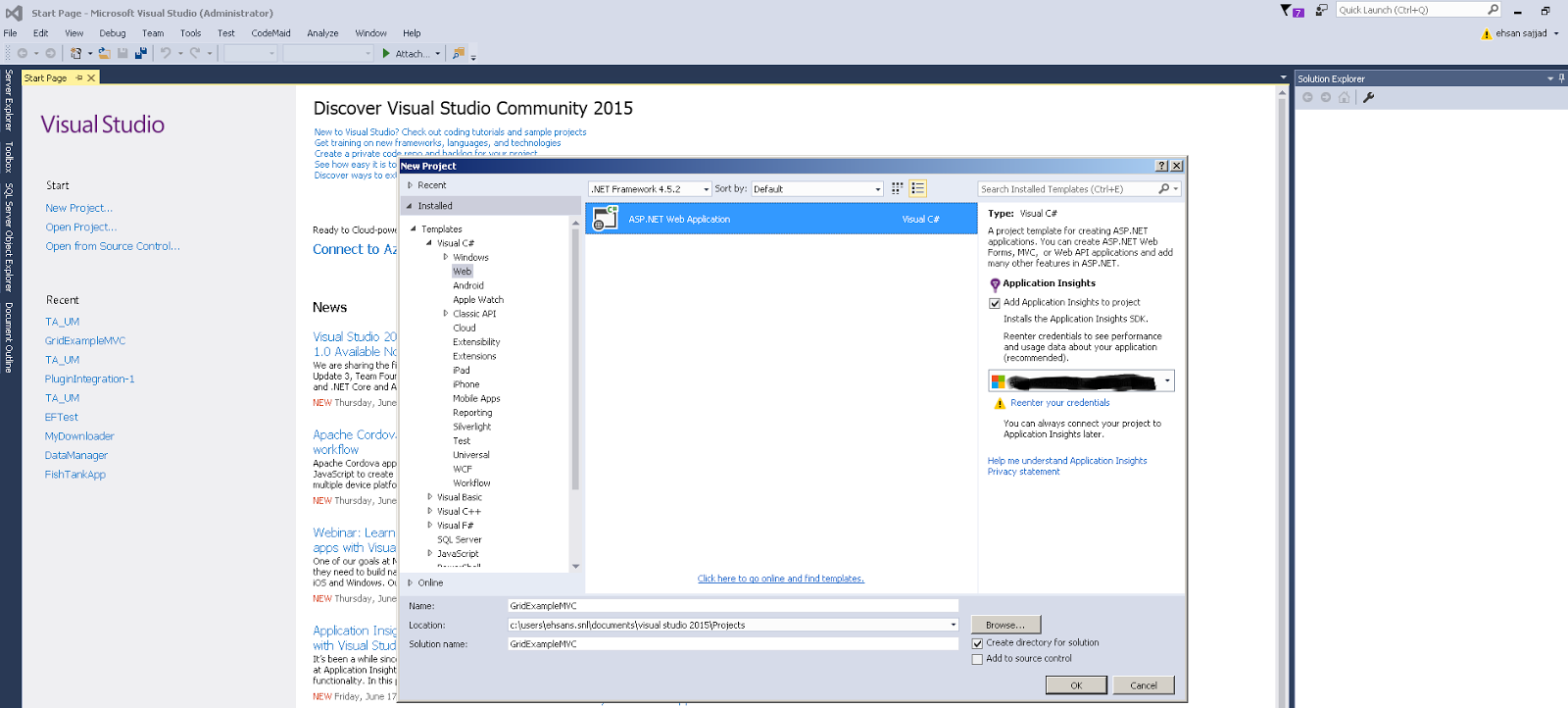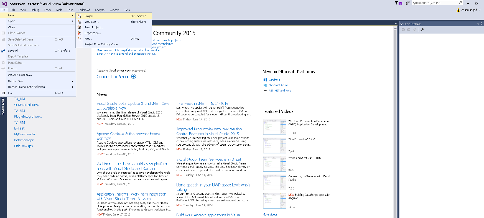 现在,创建一个新的 ASP.NET MVC 5 Web 应用程序。打开 Visual Studio 2015,点击文件>>新建>>项目。