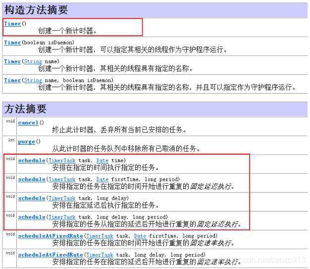 javax.util.Timer是一个对线程进行计时执行的类,它的构造方法和成员方法如下