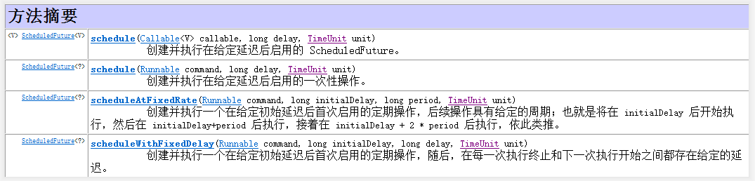 ScheduledExecutorService接口中有关于定时器的一些方法