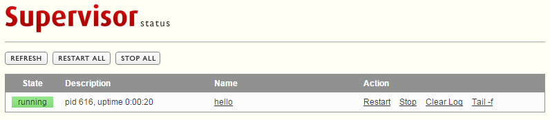 - Supervisor的命令行客户端部分称为supervisorctl,它可以与不同的supervisord进程进行通信,获取子进程信息,管理子进程。