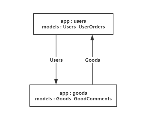 如上图所示,假设在一个Django项目中两个app,分别是users(用户相关),goods(商品相关),在users的models.py文件中有两个用户相关的模型类,分别是Users(用户信息),UserOrders(用户的订单信息),在goods的models.py文件中有两个商品相关的模型类,分别是Goods(商品信息),GoodComments(商品的评论)。到这里,我们可以想到,UserOrders肯定会和Goods通过外键关联起来,而GoodComments也肯定会和Users通过外键关联起来,这样他们就进行了循环引用。