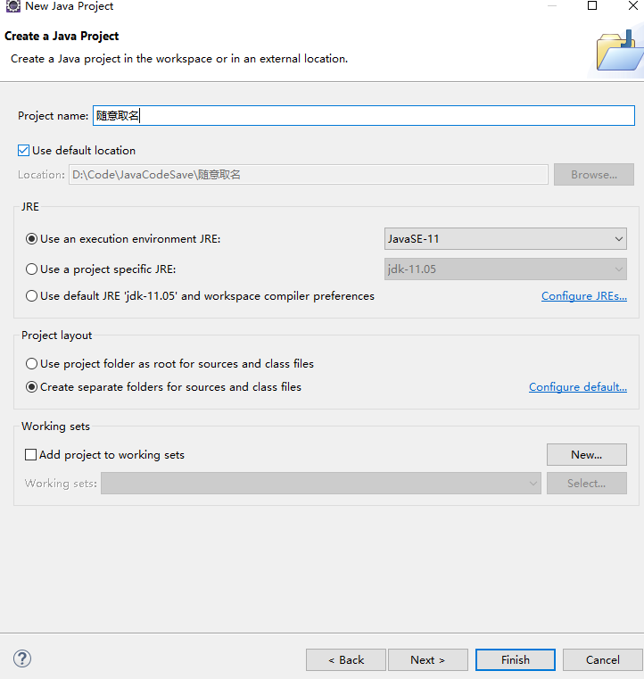 第一步:新建项目,file -> new -> project ->java project ;项目名称自己取,这里假设为(123)
