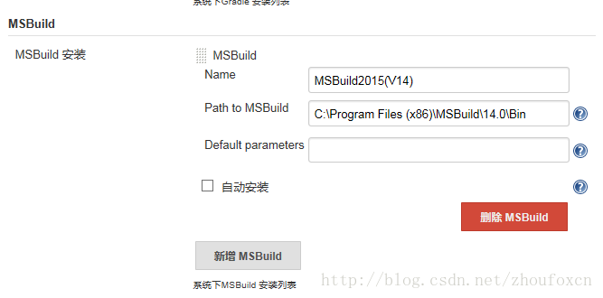点击在上一张图片中所示的“全局工具配置”链接,找到MSBuild节点,如下图所示: