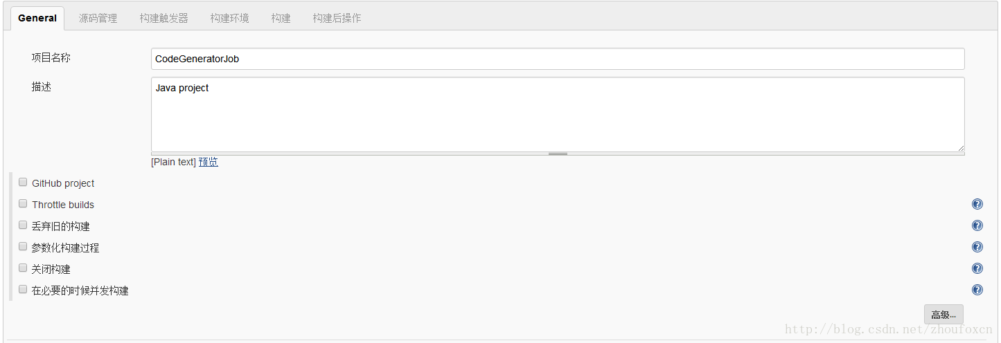 创建一个持续集成项目分General(通用)、源码管理、构建触发器、构建环境、构建和构建后操作六个部分。充分利用好这几个部分,可以实现很多强大的功能,并且还省了不少精力。