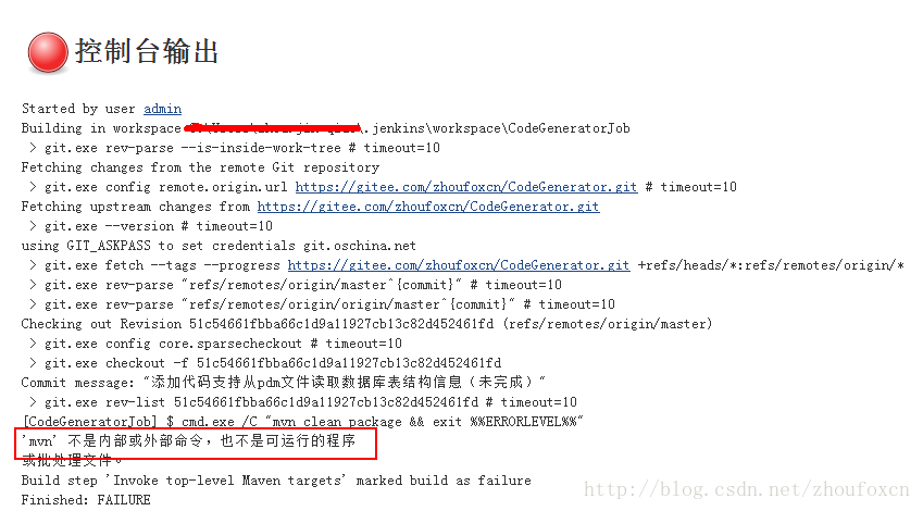 如果某次编译出戳,可以点击该次构建右侧的图标查看控制台输出(上图中用红色箭头标识),界面如下图所示: